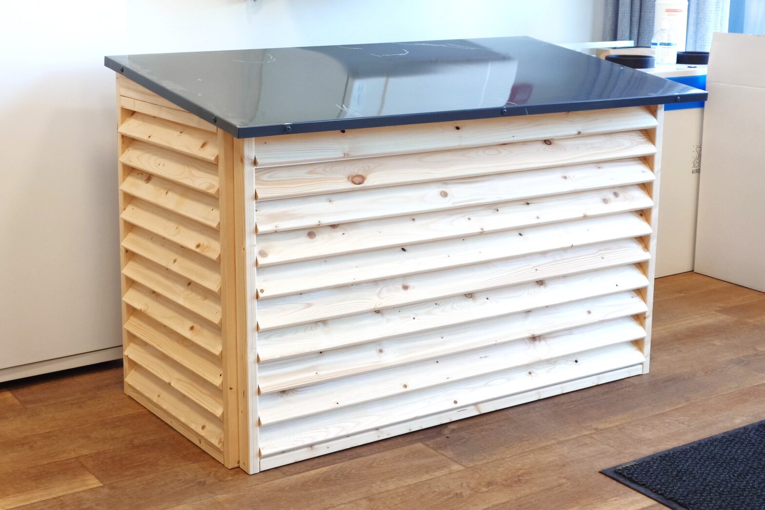 Деревянное покрытие для внешней части теплового насоса/кондиционера.